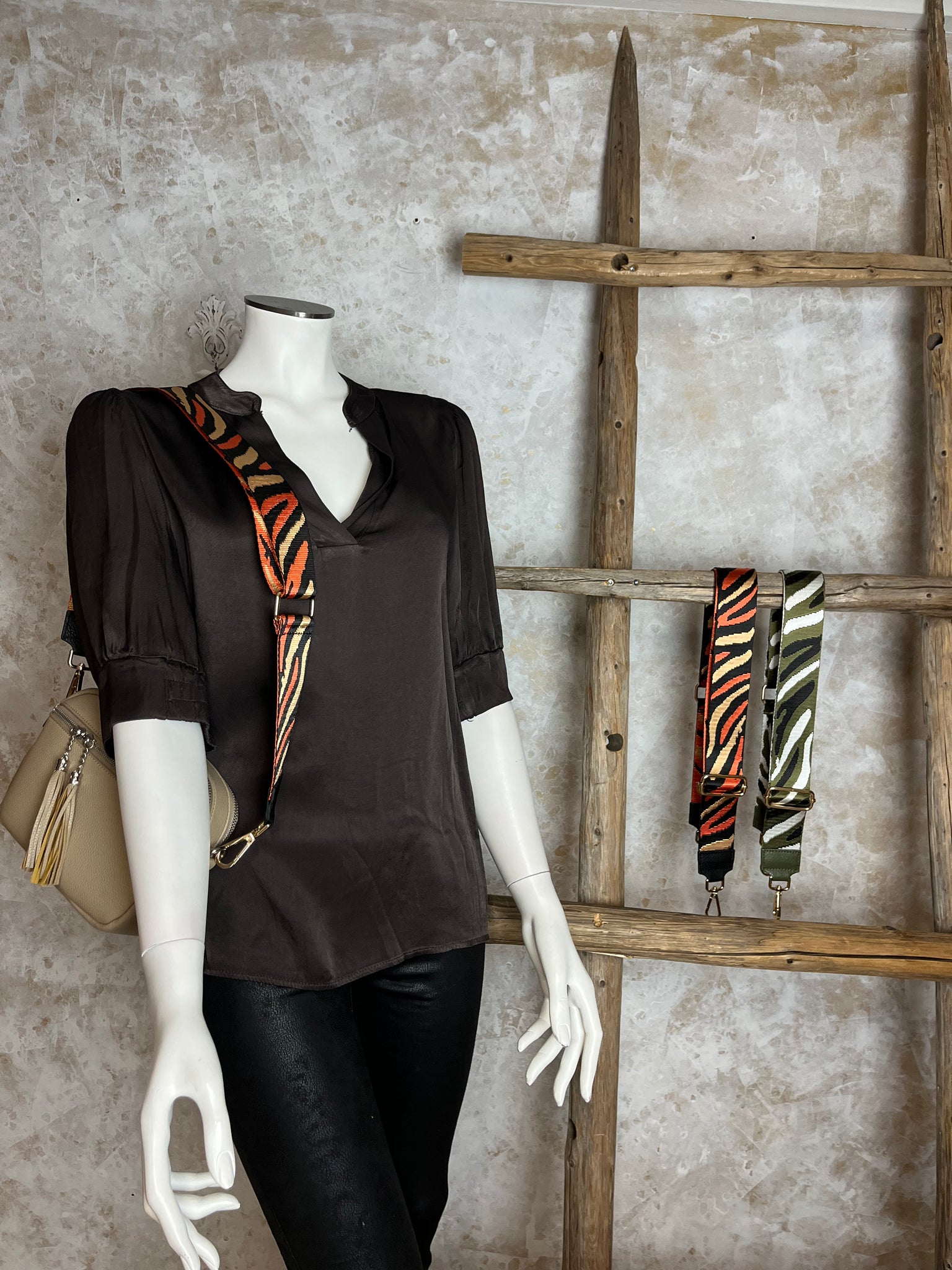 • Laukunhihna rohkealla, aaltoilevalla kuosilla