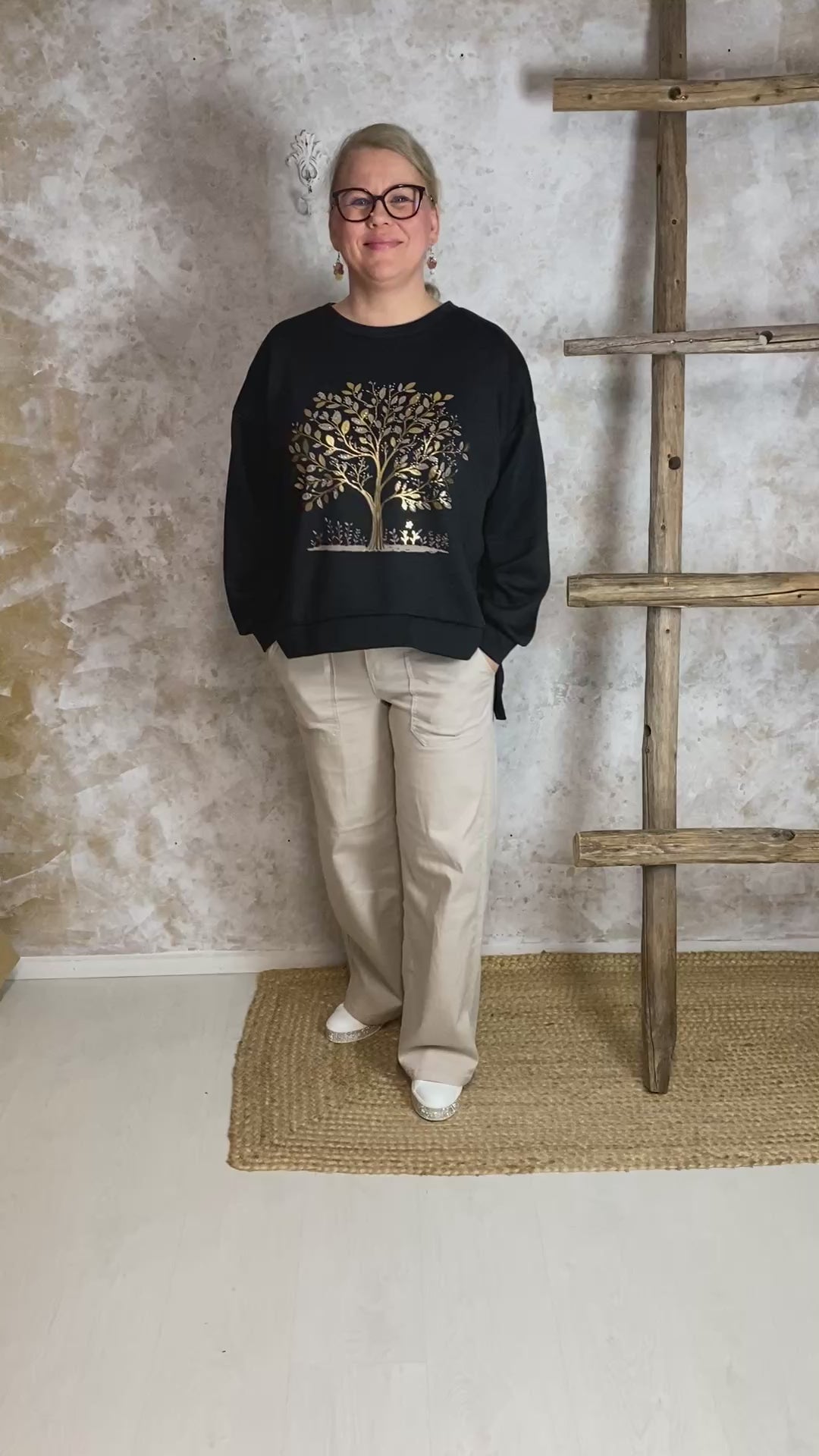 - Edessä strassikoristeltu elämänpuu-kuviointi tuo näyttävää ilmettä