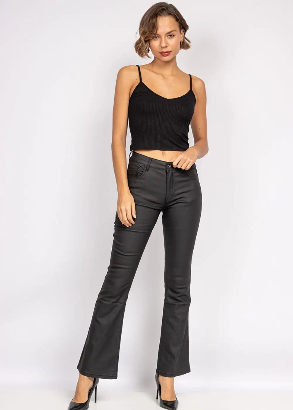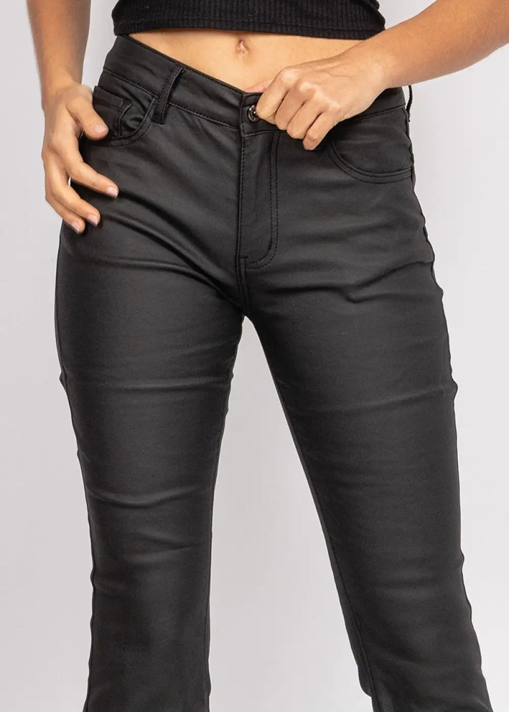 - Koutattu housu, näyttää nahalta, mutta on kangasta