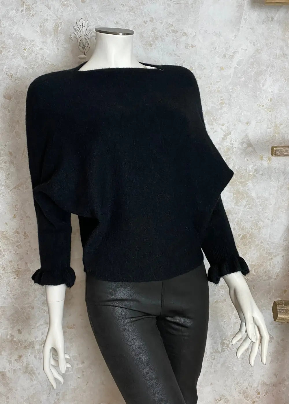 • Täyspitkät lepakkohihat, joiden suissa sievät frillat tuovat naisellista ilmettä