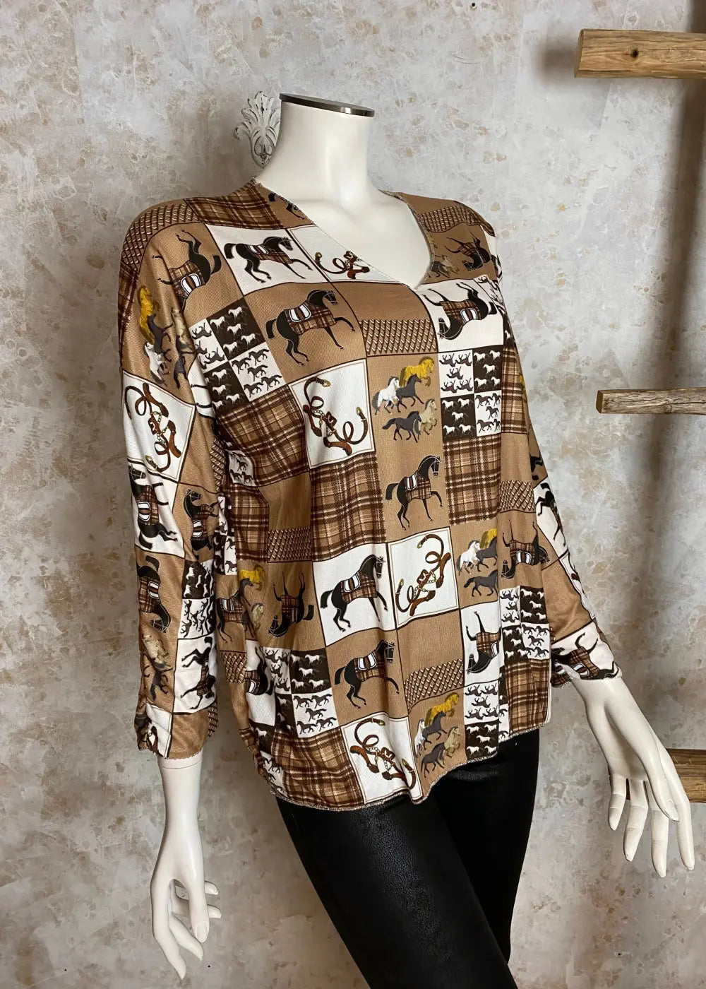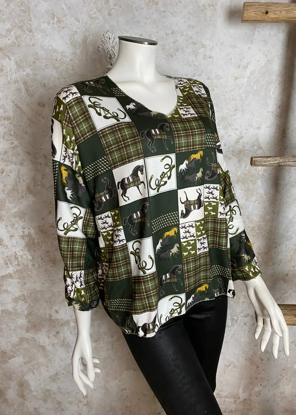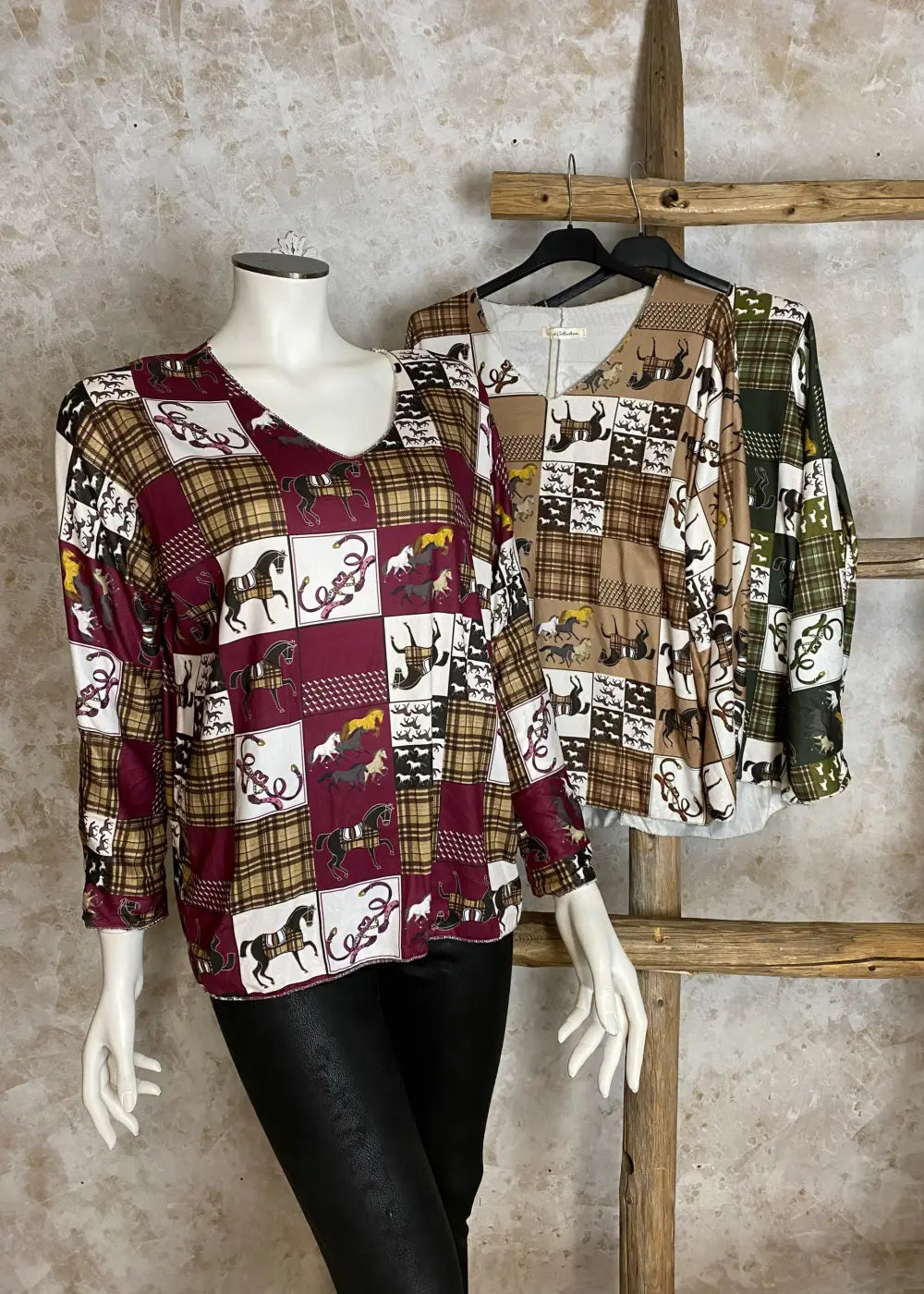 - Ruudullinen, hevosaiheinen kuviointi tuo yksilöllistä ilmettä