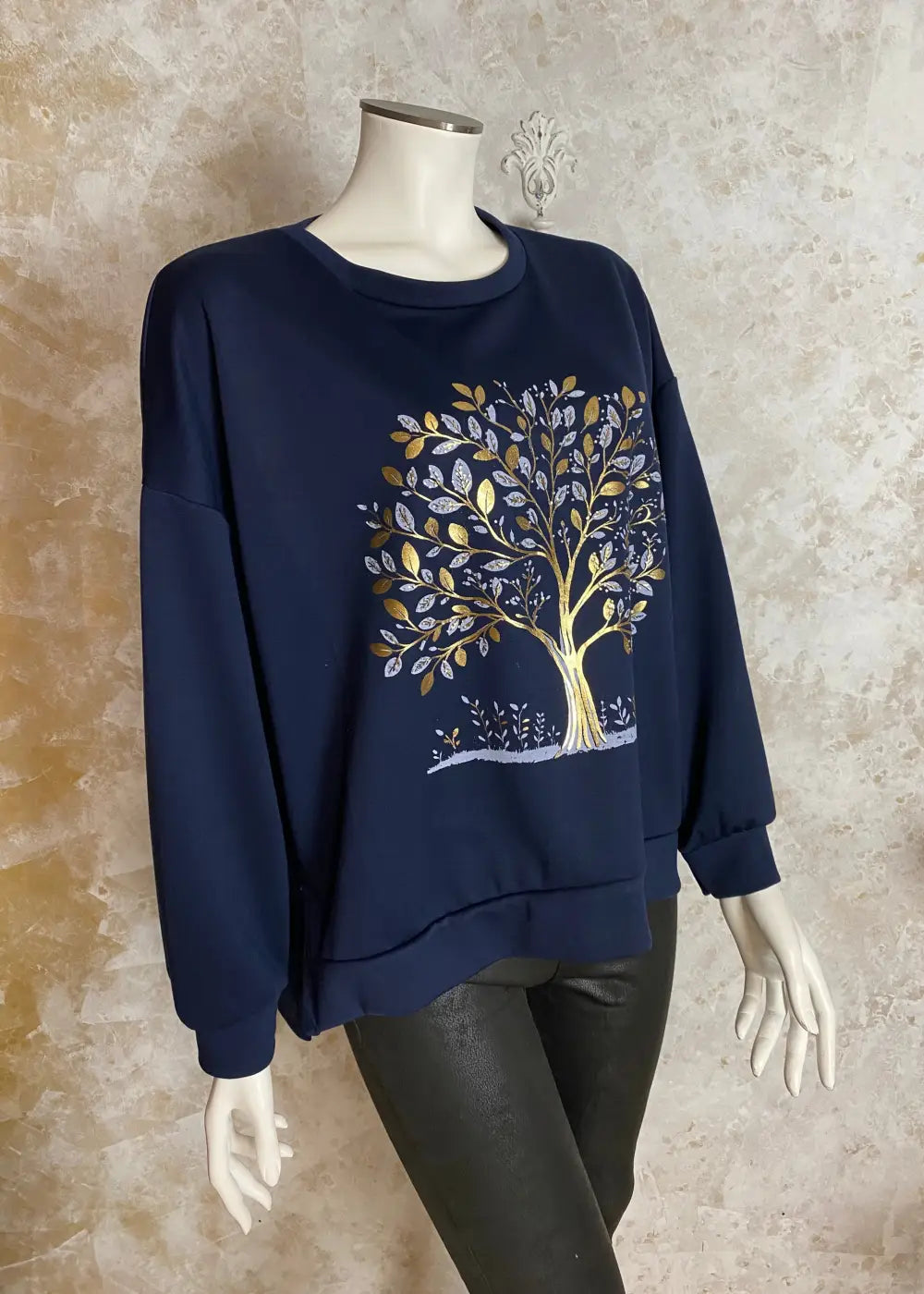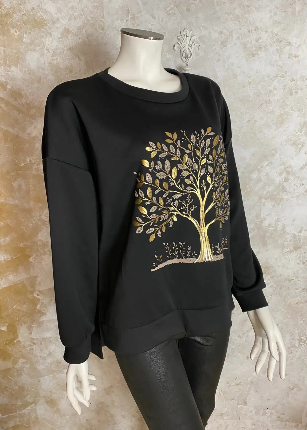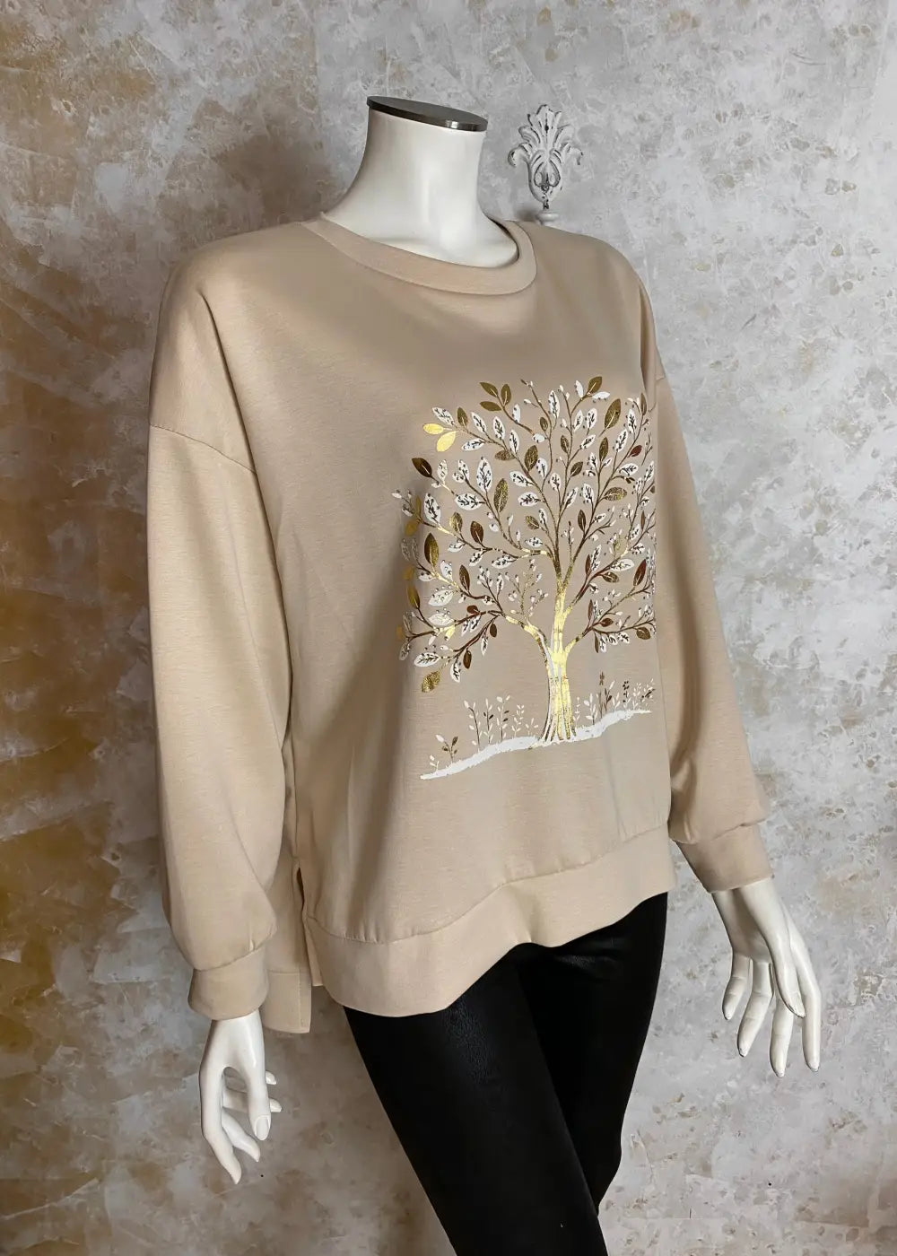 • Edessä strassikoristeltu elämänpuu-kuviointi tuo näyttävää ilmettä