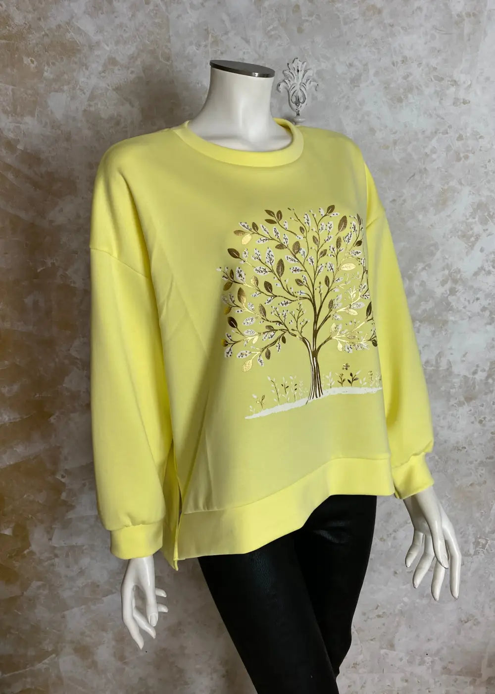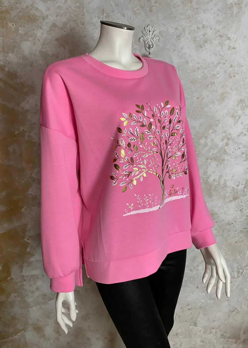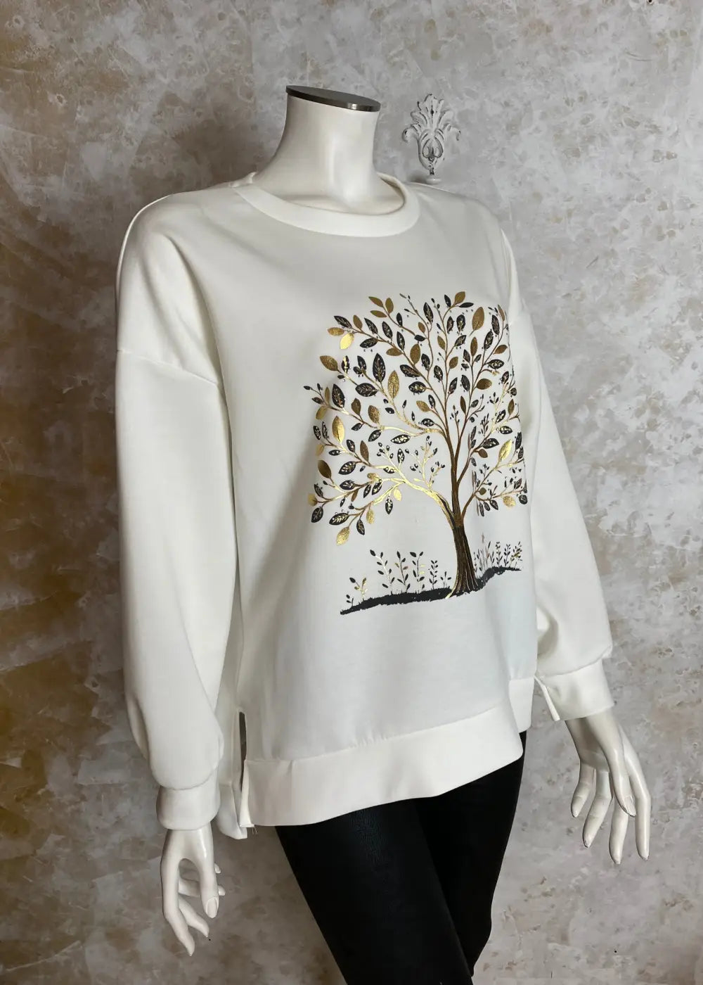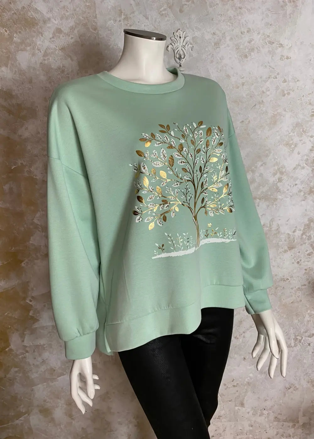 • Edessä strassikoristeltu elämänpuu-kuviointi tuo näyttävää ilmettä
