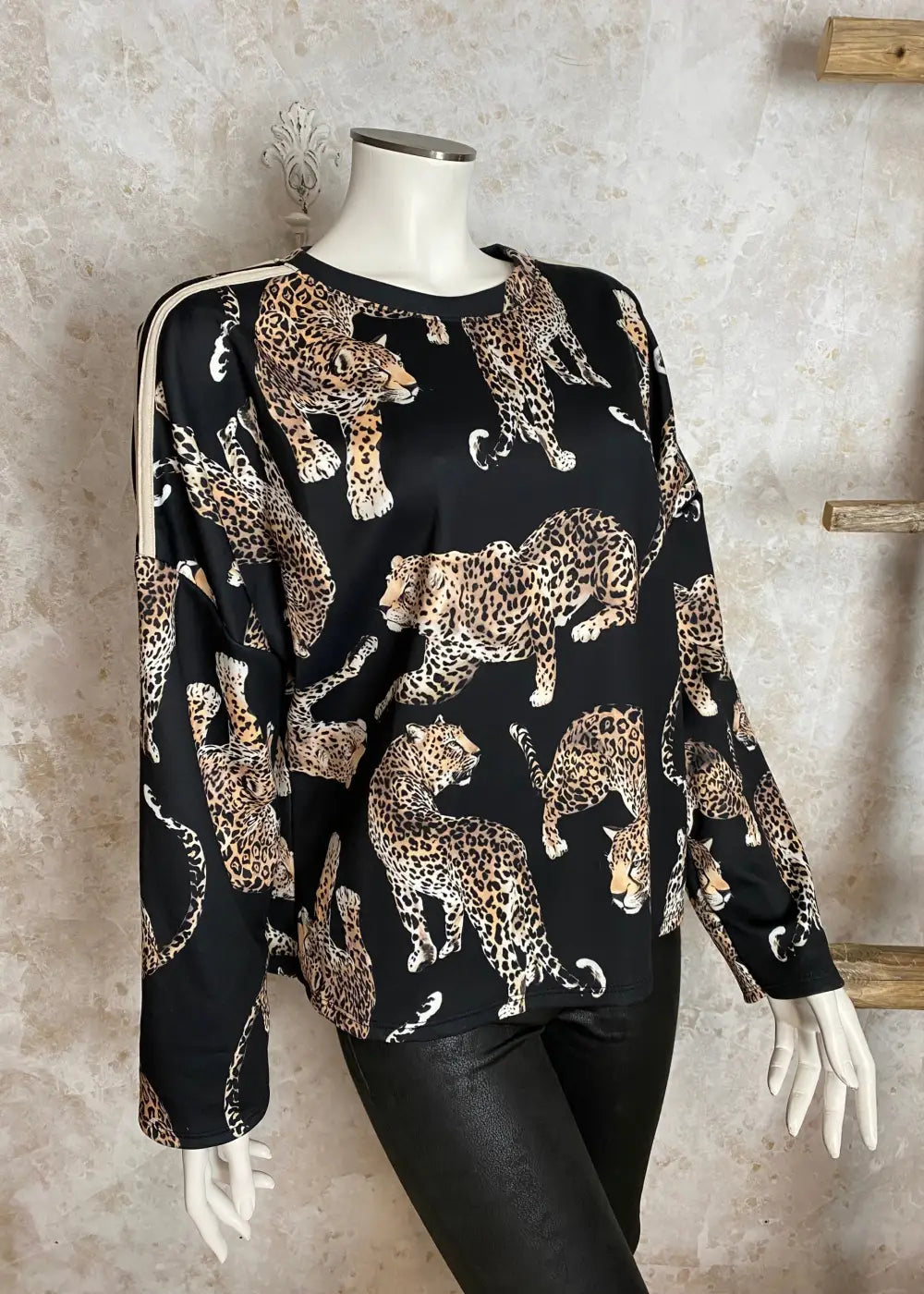 - Trendikäs leopardiprintti tuo asuun rohkeaa ja näyttävää ilmettä