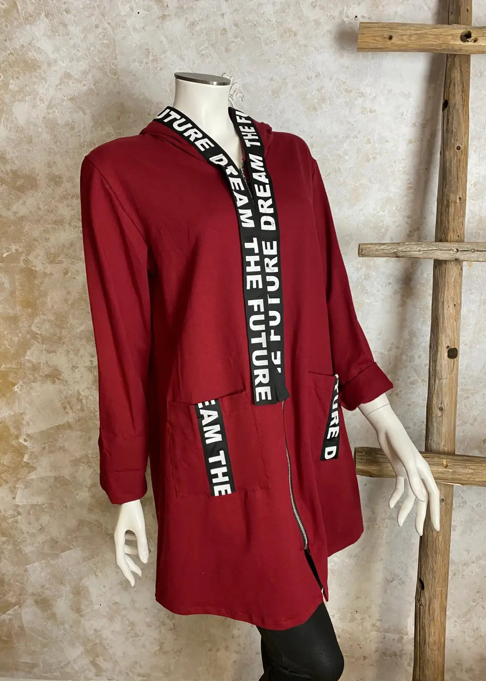• Taskunsuissa sekä hupunreunuksessa teksti