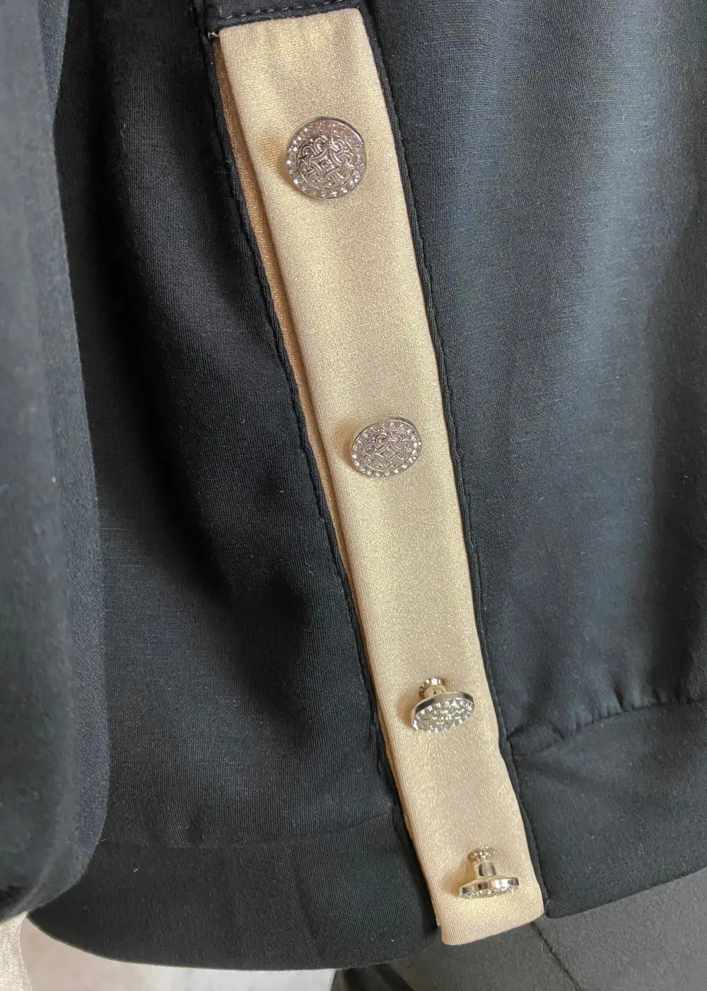 - Kultaiset, kapeat hihansuut lisäävät ylellistä viimeistelyä