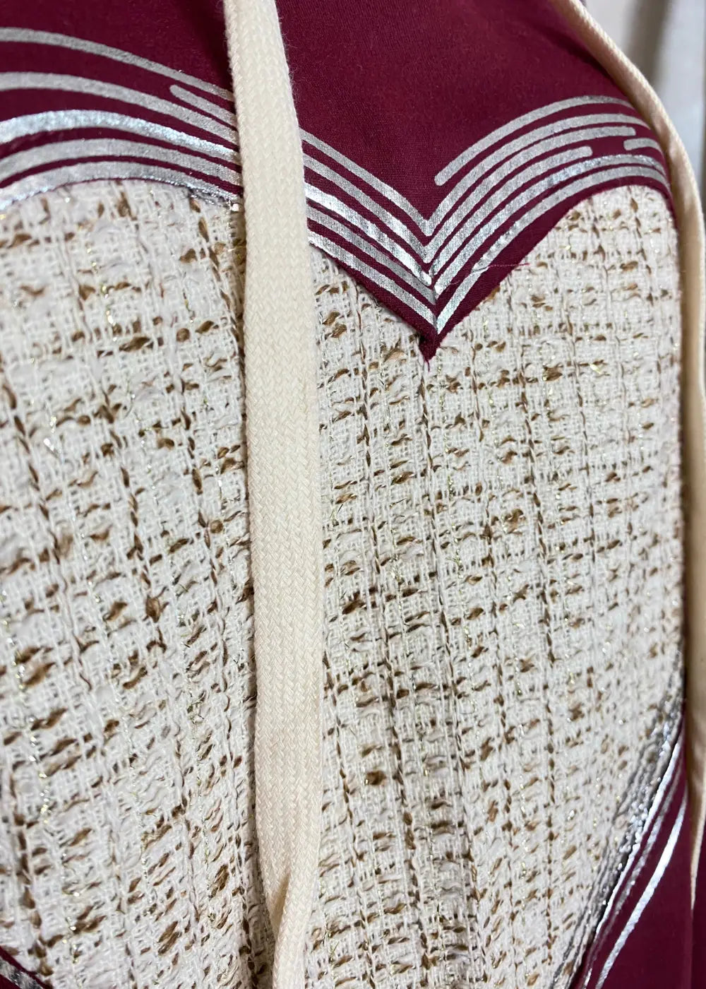 • Hupun reunus ja etukuvio näyttävää glitterkoristeltua vohvelikangasta