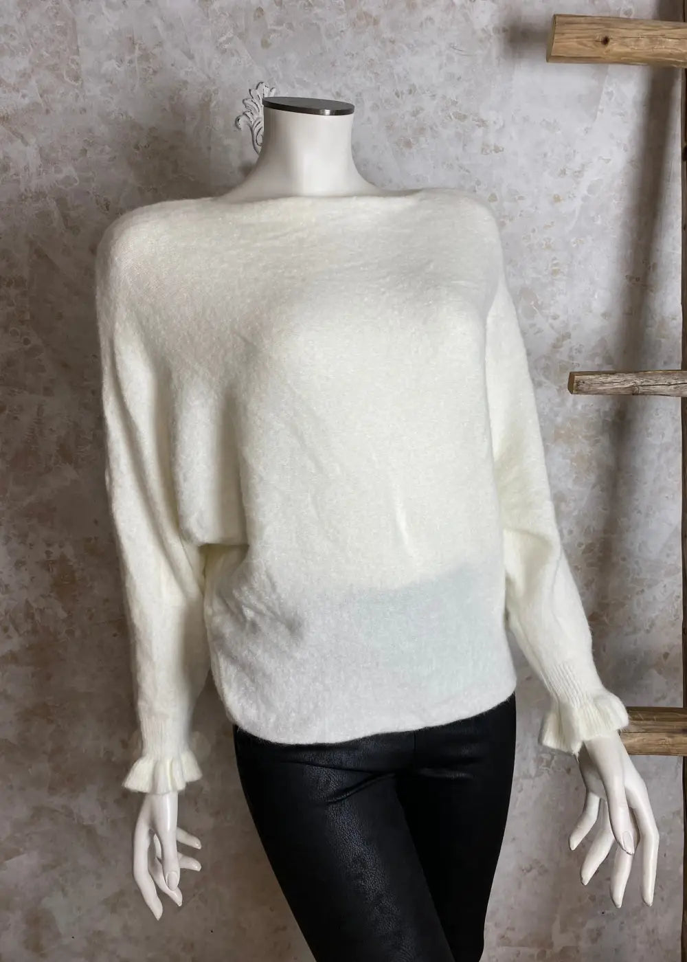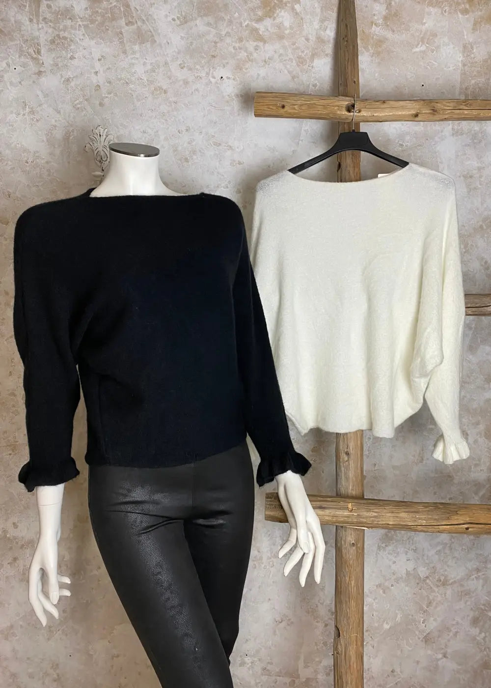 - Täyspitkät lepakkohihat, joiden suissa sievät frillat tuovat naisellista ilmettä