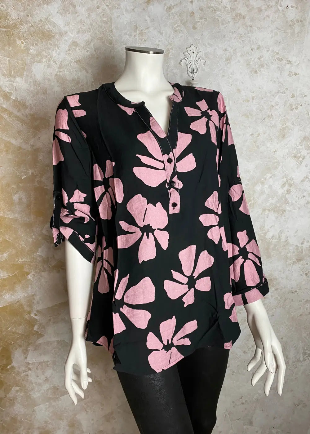 - Kevyt ja ilmava paitapusero hurmaa suurilla kukkakuvioillaan ja naisellisella leikkauksellaan