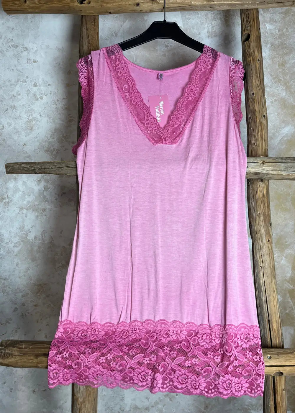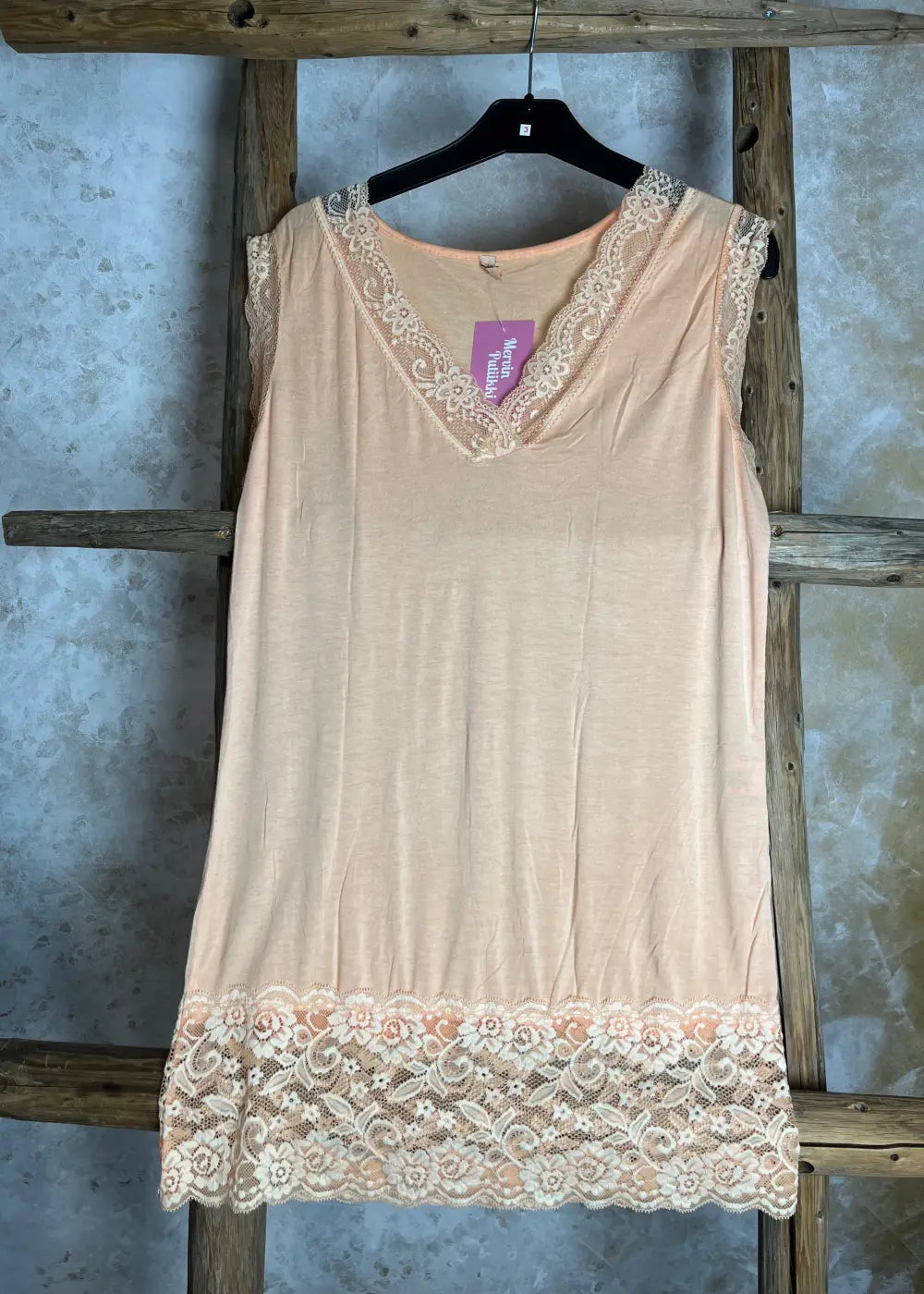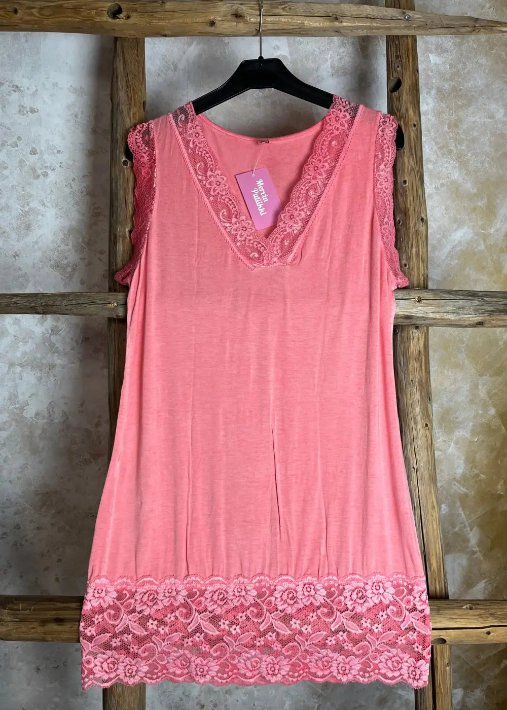 - Kauniit, leveät pitsireunukset olkaimissa ja helmassa tuovat herkkää ja naisellista ilmettä